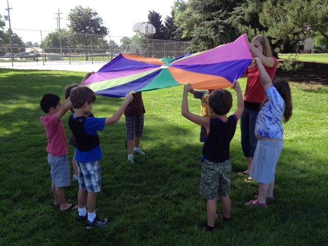 Now that June is almost over you may be getting antsy for some new summertime activities for your child. One thing that can be fun is a small parachute. You don't have to have a lot of kids to make the smaller ones work. Children love to play games with it (run under, taking turns, putting a balloon on top and trying to gently move parachute without knocking the balloon off, running under and sitting to make a tent over the top of the kids and more!)