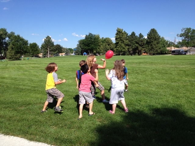 • have the kids or even just one child take a balloon and play "balloon volleyball" gently tossing into the air and trying to keep it from touching the ground. This helps with visual perceptual skills, motor planning and eye hand coordination